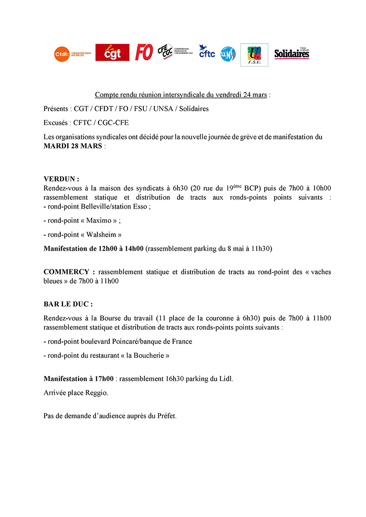 Compte rendu intersyndical du 28 mars 2023