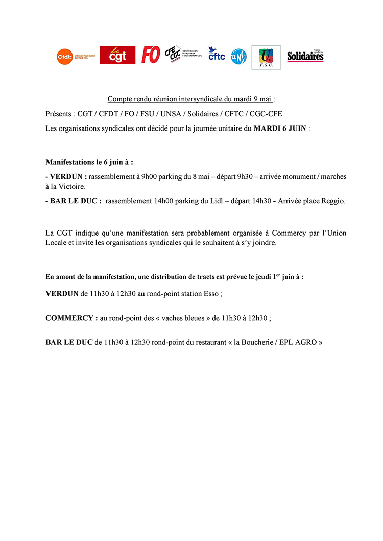 Communiqué de presse des OS de Meuse