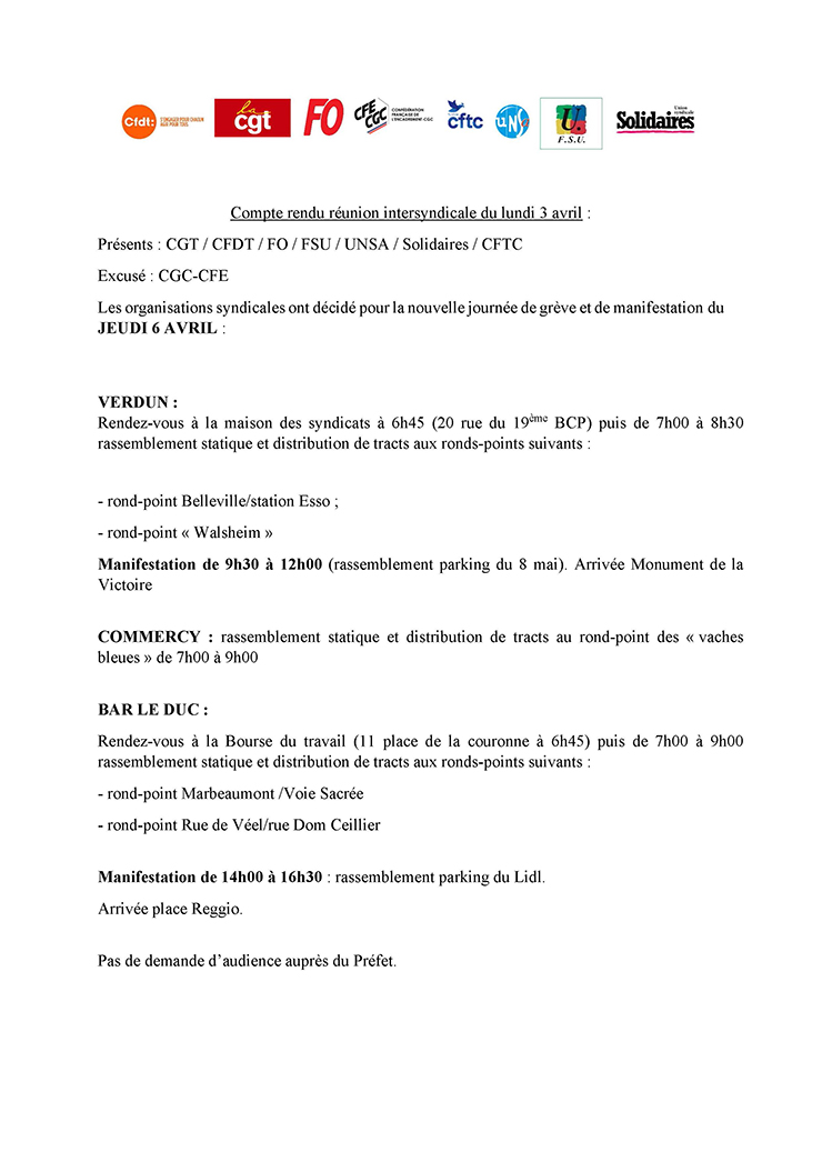 Compte rendu intersyndical du 3 avril 2023