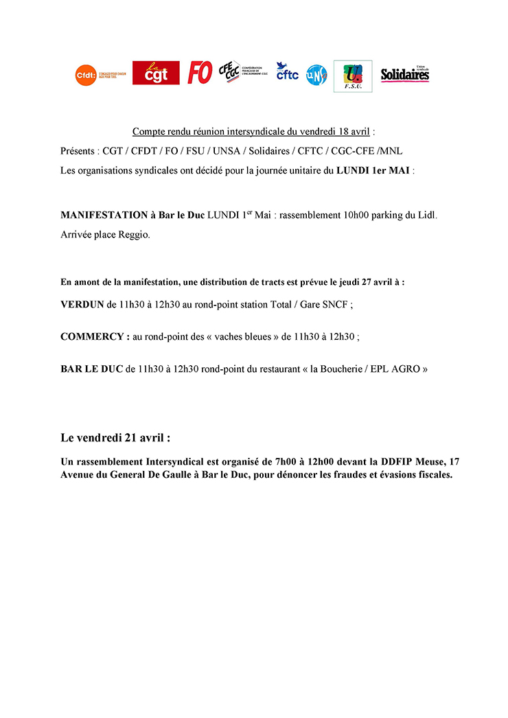 Compte rendu intersyndical du 18 avril 2023